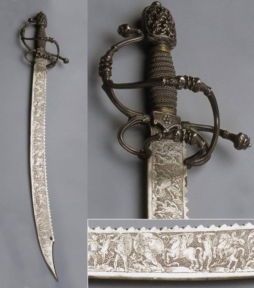 به گزارش پایگاه خبری پاعلم؛ – شمشیر شکاری (Hunting Sabre) که در مجموعه موزه آرمیتاژ در سن پترزبورگ، روسیه نگهداری می شود، یک نمونه استثنایی از هنر فلزکاری در قرن شانزدهم میلادی است. این اثر که بین سال های 1560 تا 1570 در آلمان ساخته شده، بیش از یک سلاح، یک اثر هنری محسوب می شود.