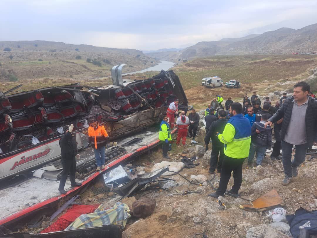 گزارش تصویری | تصادف مرگبار اتوبوس در محور پلدختر – اندیمشک؛ 10 کشته و ۱۷ مصدوم
